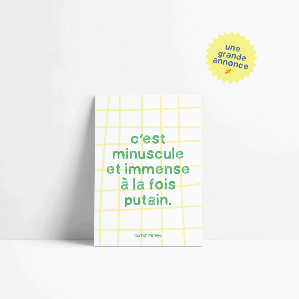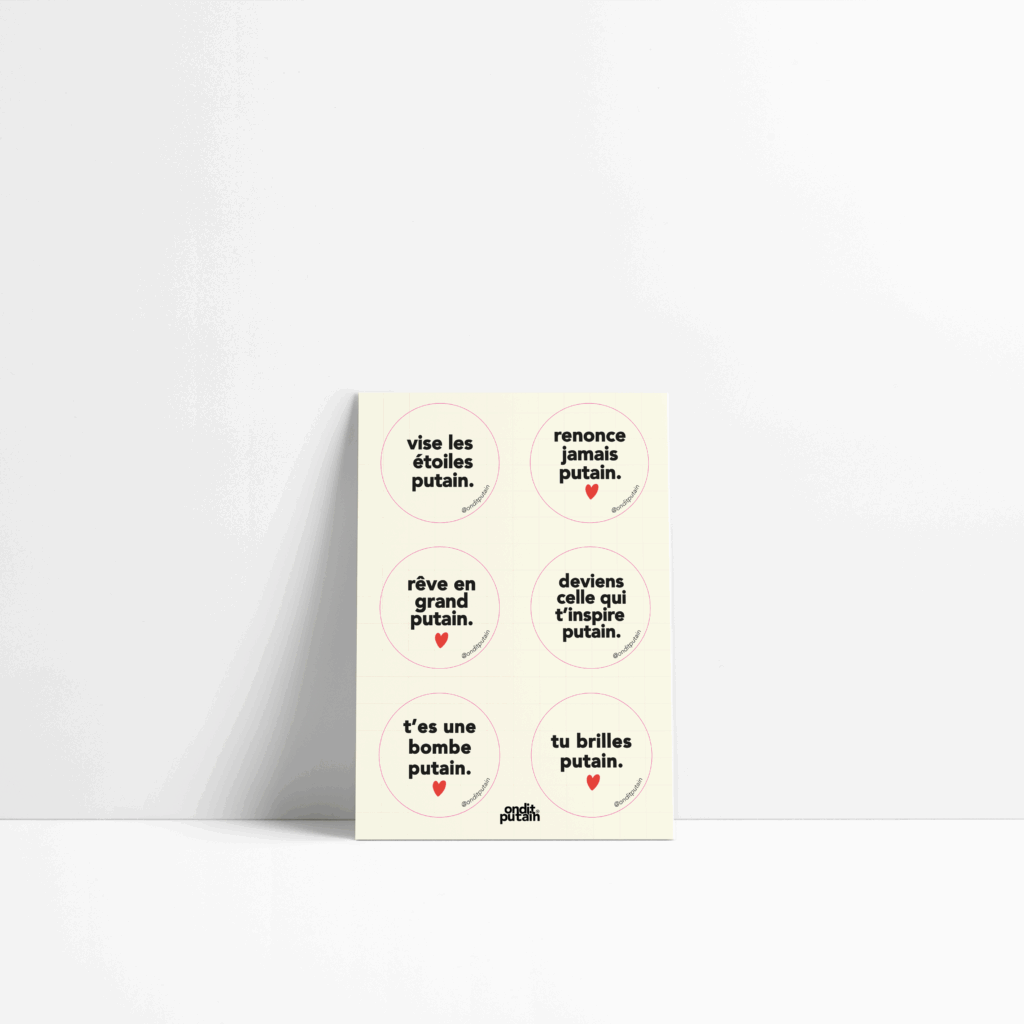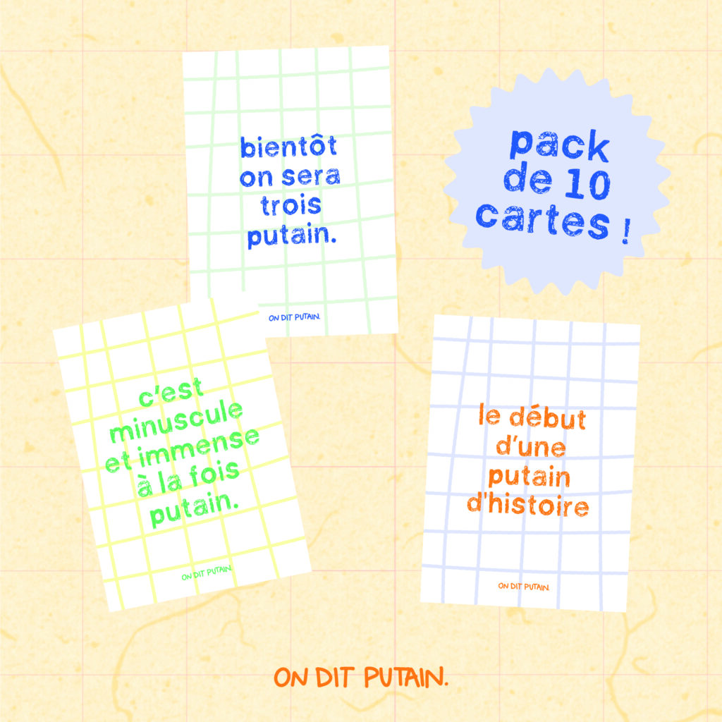 Le premier succès de OnditPutain à été les stickers de courtoisie. On dit bonjour putain. Puis deux cartes en novembre 2020: je te souhaite un putain de noël et enfin 2021 putain. Et vous avez été au rendez-vous ! L’idée était née, il n’y avait plus qu’à.